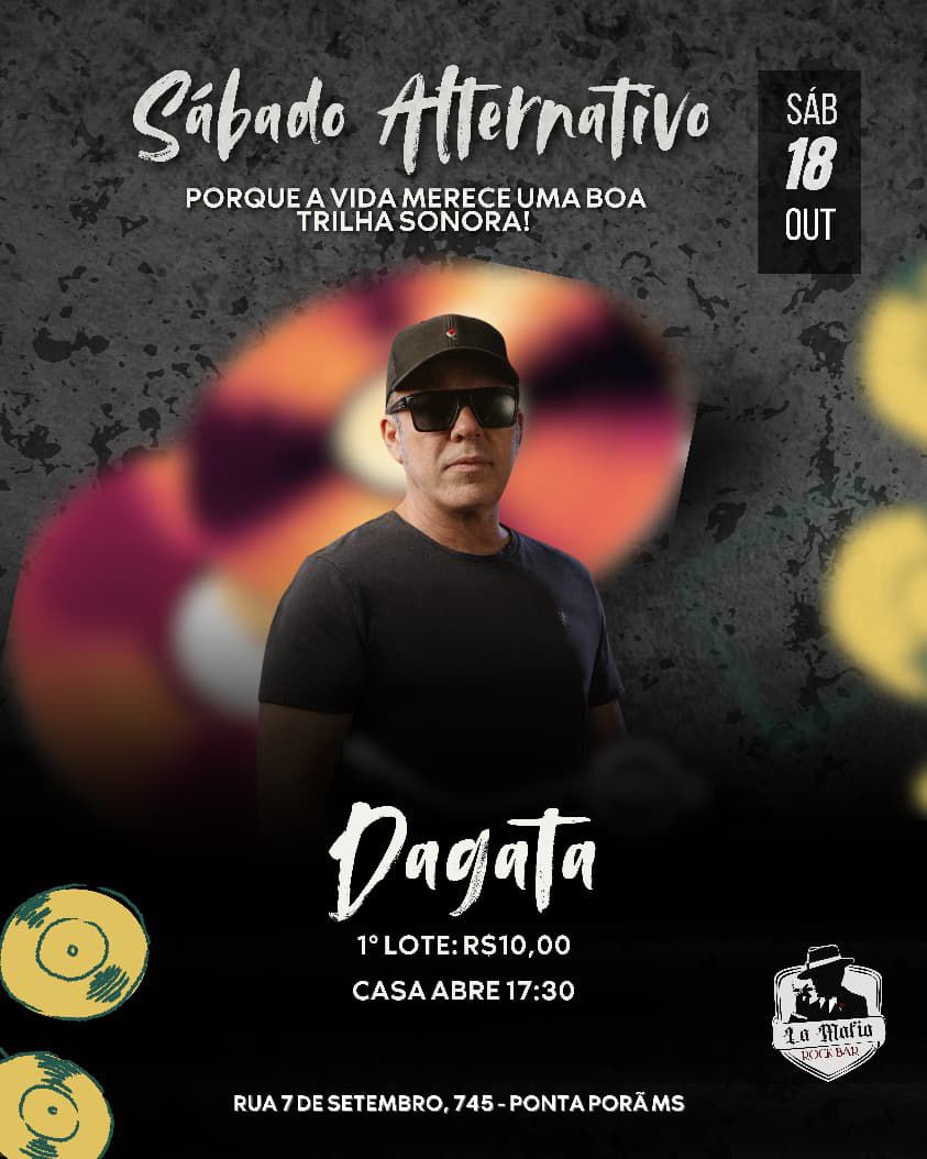 Com o nome consolidado no cenário estadual e fronteiriço Dagata é um símbolo da resistência do rock em Mato Grosso do Sul acompanhado da banda formado por excelentes músicos diretor de Dourados-MS, promete um show no melhor estilo faça você mesmo mesclando som autoral com verdadeiras pérolas do rock com a qualidade musical que acompanha o artista há tempos.